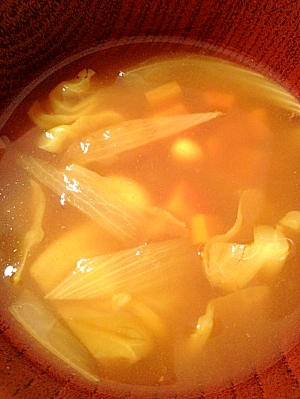 白菜1玉ペロリ 大掃除のお助けメニュー 味変リメイク連日食べれる簡単野菜スープ 直接パスタ投入 簡単過ぎるスープパスタ ぬくぬくぱくり
